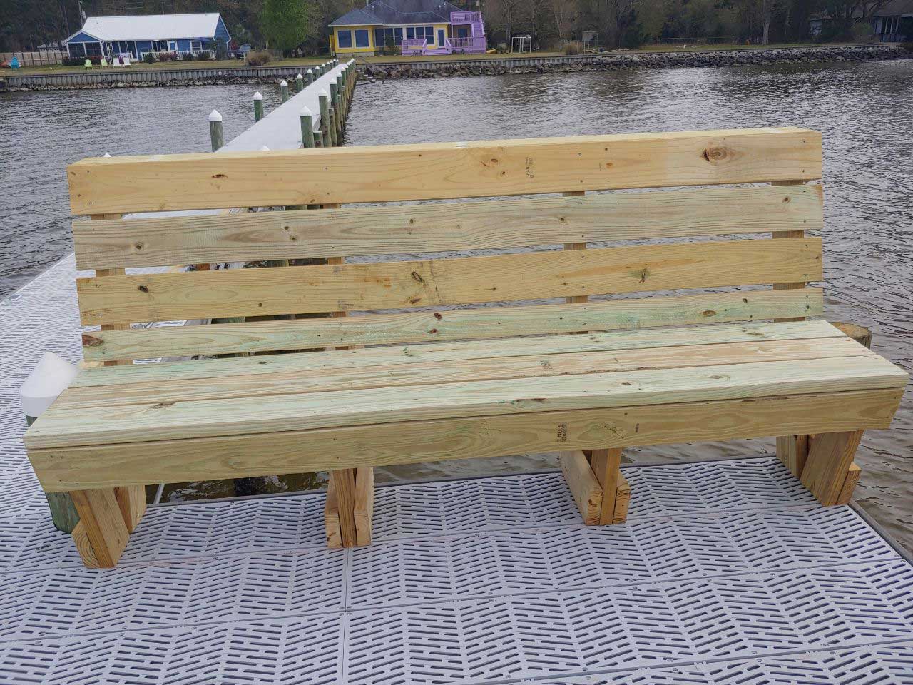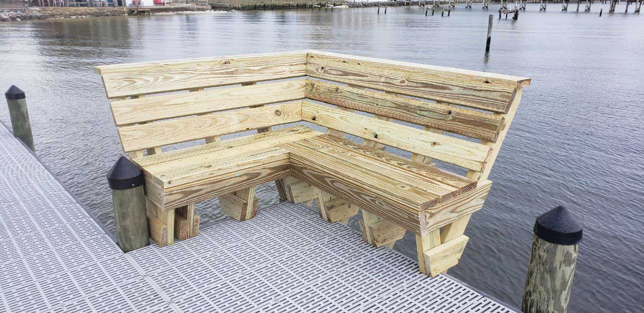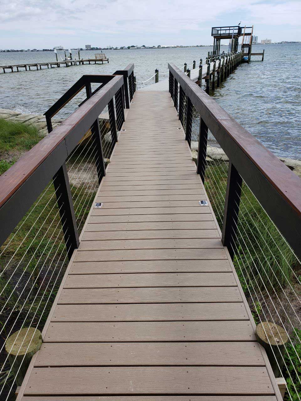 We can install solar lights, fish cleaning stations, aluminum dock laders, stainless steel cable railing, piling caps, piling wrap, benches, etc.