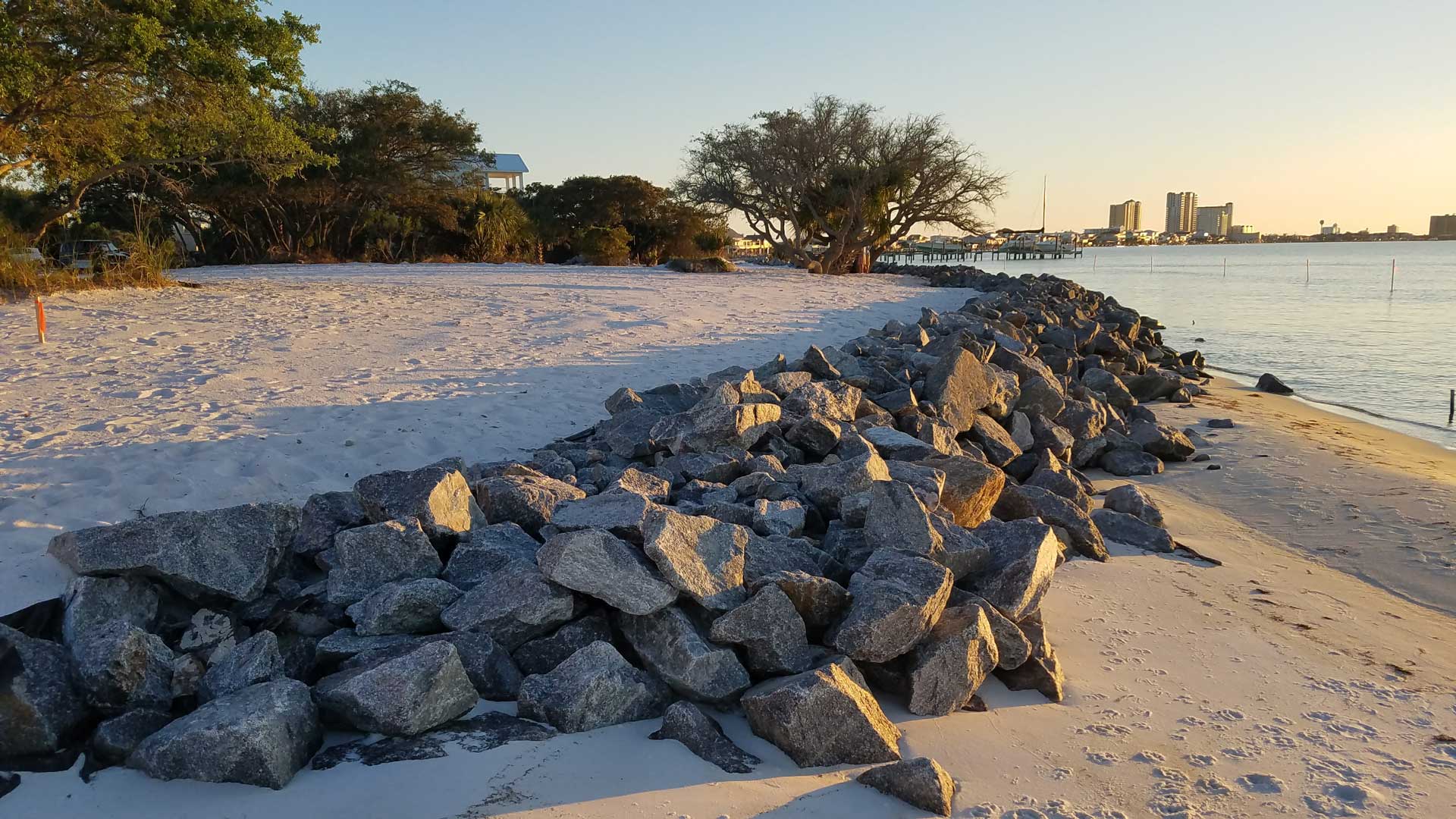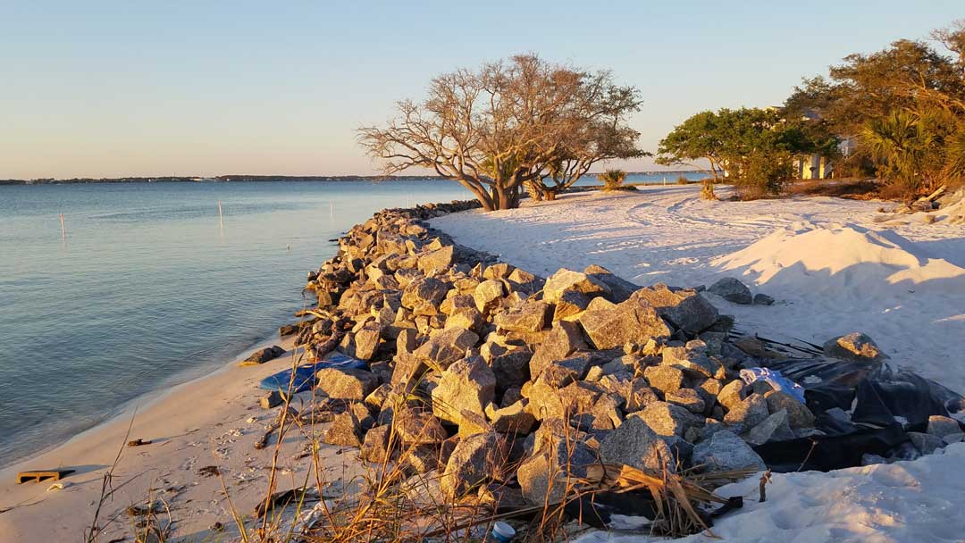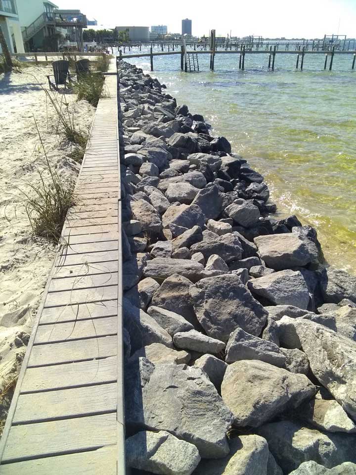 Limestone rip rap can be installed by itself or in front of a seawall. Permitting agencies sometimes require you to have rip rap if you are installing a new seawall.